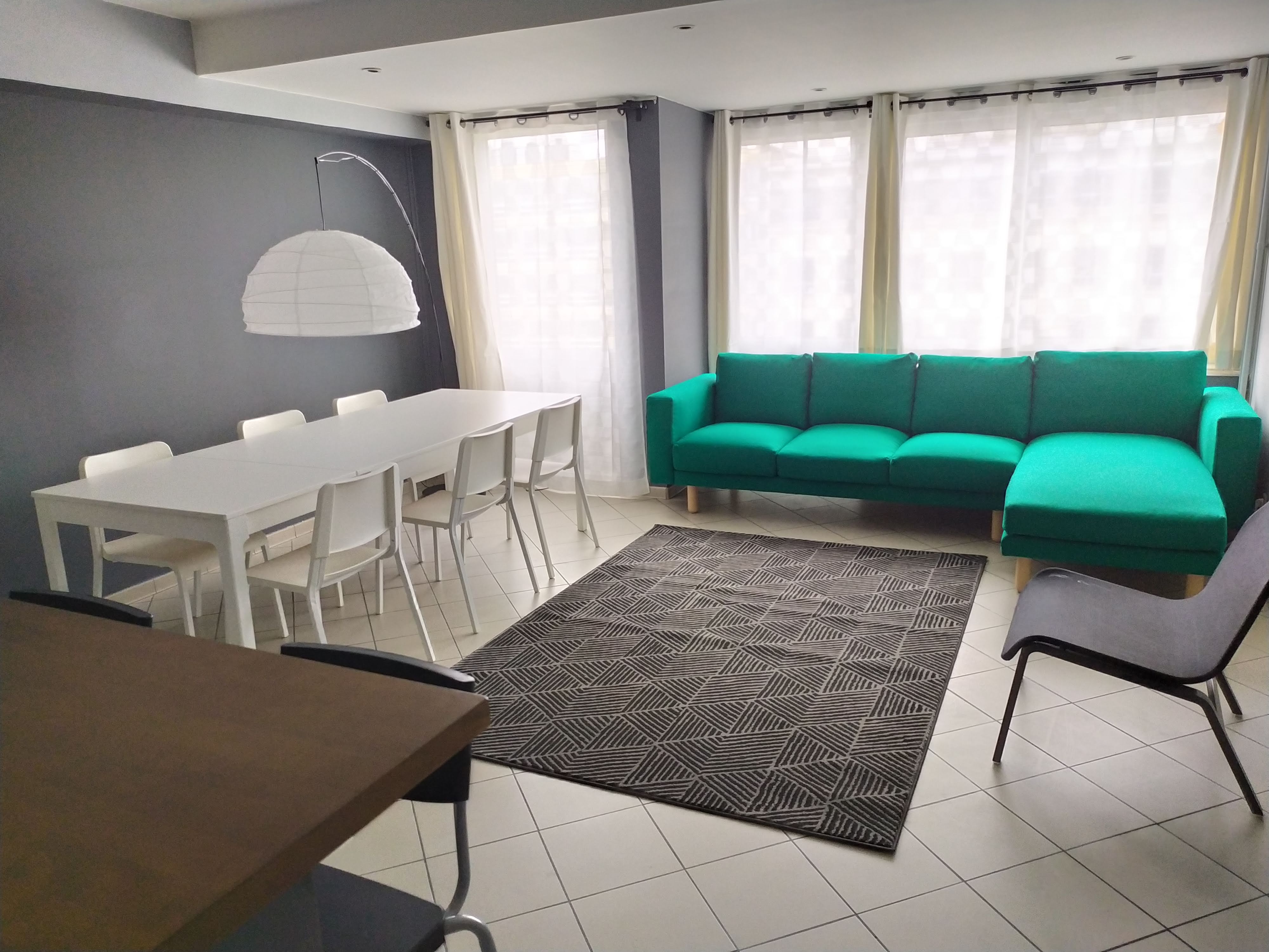 RENT: 1200 € / month is 400 to 450 € / month / room + Temporary charges: 100 € / month / room (private consumption in water, heating, unlimited internet and common charges of the building) Deposit: from 50 € for the key (recoverable) Rental deposit: 800 € / room equivalent to 2 months rent). Type of lease: principal residence lease with roommate agreement. This apartment is ideal for a roommate of 3 people, who wish to have each private area and comfort.